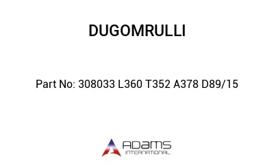 PLEASE CONTACT US TO ORDER TO GET THE BEST PRICE AND DELIVERY FOR DUGOMRULLI BRANDED 308033 L360 T352 A378 D89/15 YOU MAY ASK FOR SOME OTHER PART NUMBER AS WELL. WE CAN OFFER BEST PRICE AND DELIVERY WITH WIDE PRODUCTS DISTRIBUTION NETWORK IN USA AND THROUGHOUT THE WORLD IN INDUSTRIAL PRODUCTS MARKET.