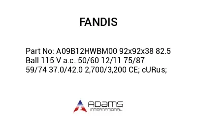 PLEASE CONTACT US TO ORDER TO GET THE BEST PRICE AND DELIVERY FOR FANDIS BRANDED A09B12HWBM00 92x92x38 82.5 Ball 115 V a.c. 50/60 12/11 75/87 59/74 37.0/42.0 2,700/3,200 CE; cURus; YOU MAY ASK FOR SOME OTHER PART NUMBER AS WELL. WE CAN OFFER BEST PRICE AND DELIVERY WITH WIDE PRODUCTS DISTRIBUTION NETWORK IN USA AND THROUGHOUT THE WORLD IN INDUSTRIAL PRODUCTS MARKET.