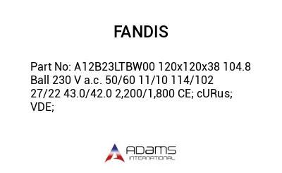 FANDIS A12B23LTBW00 120x120x38 104.8 Ball 230 V a.c. 50/60 11/10 114/102 27/22 43.0/42.0 2,200/1,800 CE; cURus; VDE; UK Sales