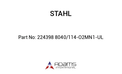PLEASE CONTACT US TO ORDER TO GET THE BEST PRICE AND DELIVERY FOR STAHL BRANDED 224398 8040/114-O2MN1-UL YOU MAY ASK FOR SOME OTHER PART NUMBER AS WELL. WE CAN OFFER BEST PRICE AND DELIVERY WITH WIDE PRODUCTS DISTRIBUTION NETWORK IN USA AND THROUGHOUT THE WORLD IN INDUSTRIAL PRODUCTS MARKET.
